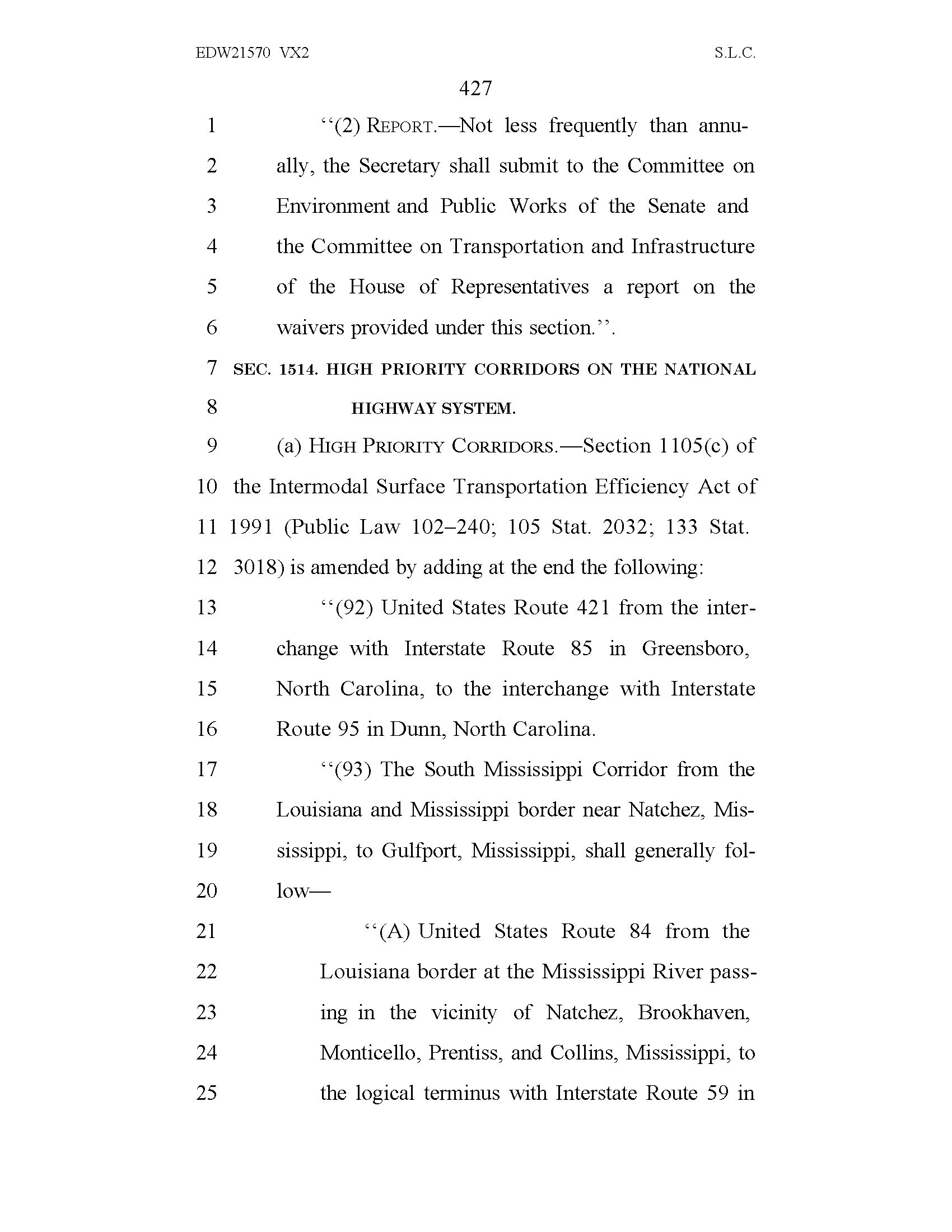 I-14I-14 was first proposed in the 2005 MAP-21 Act under the title "The 14th Amendment Highway" envisioned to extend from Augusta Georgia to Natchez Mississippi. A feasibility study was completed and came to the conclusion that projected traffic need was low for this particular route. Support in state transportation departments in Georgia and Alabama never really formulated. Mississippi and Louisiana were more receptive especially after Texas took the initiative to create the Central Texas Corridor. In 2018, a new bill (H.R. 6111) was introduced into the U.S. House of Representatives to extend the Future I-14 Central Texas corridor created by Congress in 2015 FAST Act through Louisiana and Mississippi, but did not receive a full vote. In 2021, the new infrastructure bill approved by the House of Representatives "INVEST in America Act" included the entire I-14 Gulf Coast Strategic Highway route from Texas to Georgia. |