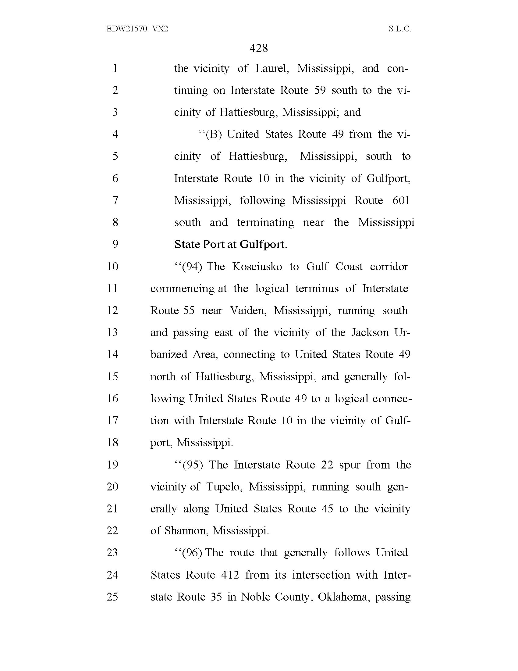 I-14I-14 would continue along U.S. 84 from Natchez to Laurel. I-14 would run concurrent north with I-59 and I-20 to the Alabama border I-61The Senate infrastructure bill, S 1931 - Surface Transportation Reauthorization Act of 2021, included the Kosciusko to Gulf Coast Corridor starts at Interstate Route 55 near Vaiden, Mississippi, running south and passing east of Jackson Metro Area, connecting to United States Route 49 north of Hattiesburg, Mississippi, and generally following United States Route 49 to Interstate 10 in Gulfport, Mississippi. Along with I-14 created in the House infrasture bill, the Kosciusko to Gulf Coast Corridor will also be an Interstate corridor and will likely have the designation Interstate 61. |